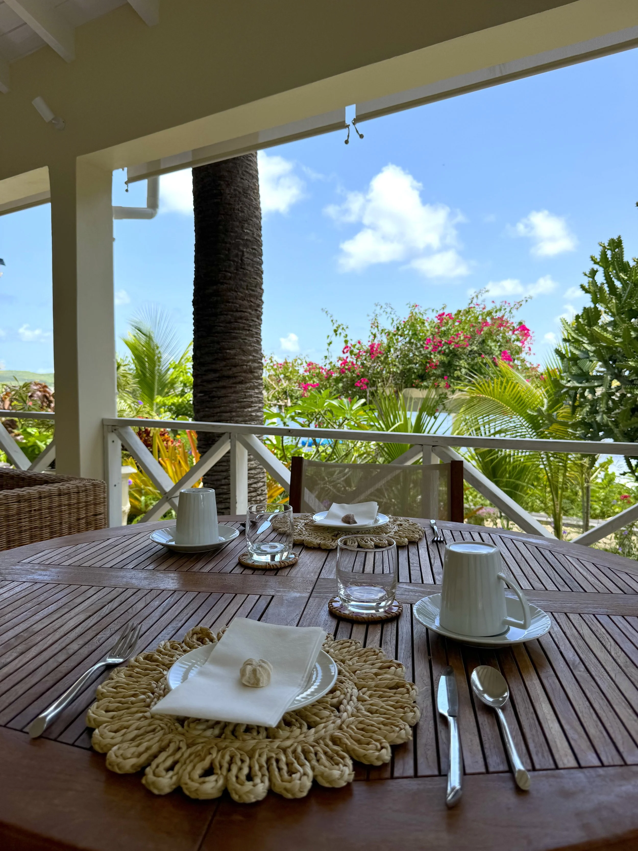 Our in house guest can enjoy their included breakfast on the shaded terrace or at the bar counter, both opening to sea views.